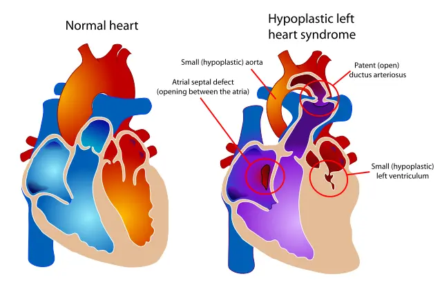 HLHS or Hypoplasti Left Heart Syndrome is a birth defect that affects normal blood flow through the heart. As the baby develops during pregnancy, the left side of the heart does not form correctly. Hypoplastic left heart syndrome is one type of congenital heart defect. Congenital means present at birth. (As per google definition)